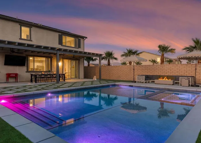 この別荘はパームスプリングス国際空港から45㎞圏内で、コーチェラ バレー歴史博物館などの文化的名所から自動車で15分以内です。 スポットライト 29 カジノはこの宿泊施設から3.7キロメートルの距離で、ランチョ・ラス・フローリーズ・パークから2.1キロメートル先にあります。